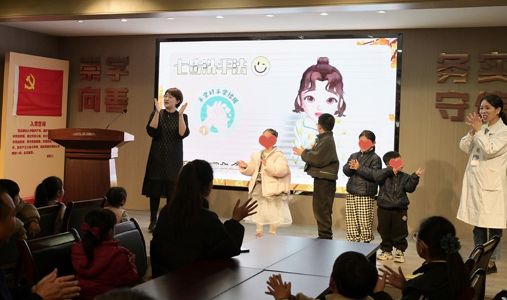 冬春是儿童传染病高发季节,来自儿科第二党支部的盛安群主治医生、龙港院区NICU(C441)病区副护士长胡卫洁为孩子们带来了一堂生动有趣的儿童传染病预防知识科普讲座。通过卡通动画和互动问答,为孩子们讲解了常见传染病的预防方法以及日常卫生习惯的重要性,通过形象生动的“洗手歌”现场教授正确的七部洗手法,现场演示佩戴口罩的正确方法,以增强孩子们的自我防护意识,帮助打好健康保卫战。孩子们积极参与,现场气氛热烈。