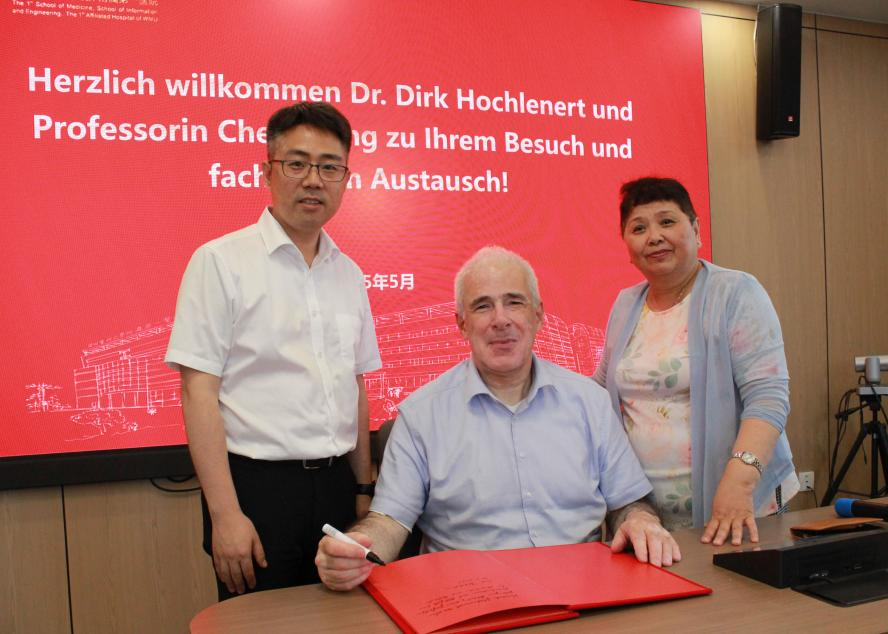 Dirk Hochlenert教授、陈梦教授向我院创面修复科赠送足部及足部疾病解构图谱,并为科室题词。