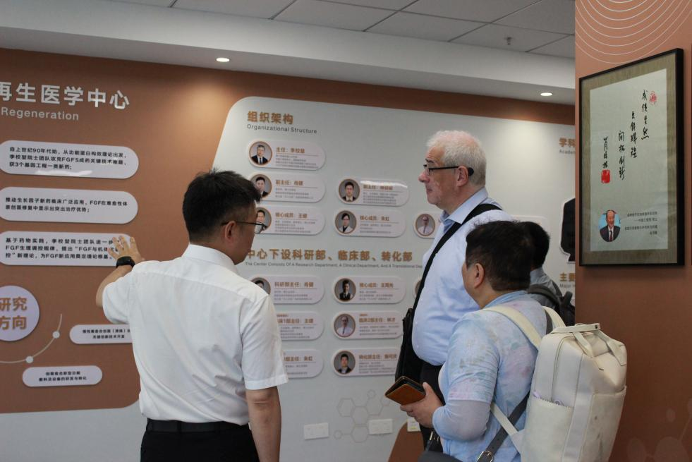 会后,Dirk Hochlenert教授和陈梦教授一行参观了我院创面修复与再生医学中心展厅,了解了我院创面修复与再生医学中心发展历程与标志性建设成果,并前往国家临床重点专科——创面修复科病区,实地调研病区运行情况,为几位糖尿病足患者提供会诊建议。