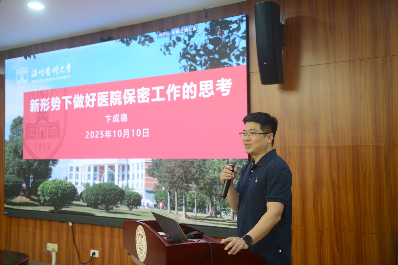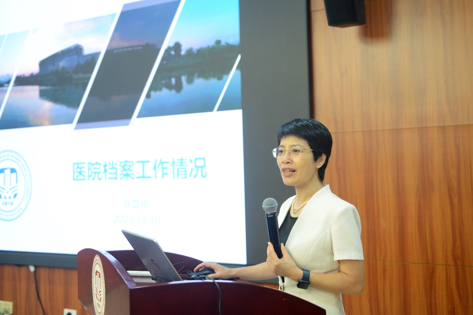 为全面提升行政效能,进一步加强档案管理工作,增强全员保密意识与业务能力,10月10日下午,我院在南白象院区召开“2025年度档案管理领导小组会议暨保密工作和档案业务培训交流会”。院党委副书记许慧清、温州医科大学办公室(校友办)副主任卞成德、档案馆馆长兼办公室副主任洪冬微、档案管理领导小组成员、各部门兼职档案员及综合档案室专职档案员参加会议。